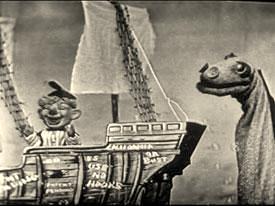 There was another program on television with Andy Devine and Froggy the Gremlin. That big fat man with a gravelly voice telling the fog puppet to "Plunk your magic twanger, Froggy". Every time Froggy plucked his cigar box guitar, it would explode in his face to my delight. Dumb old frog.